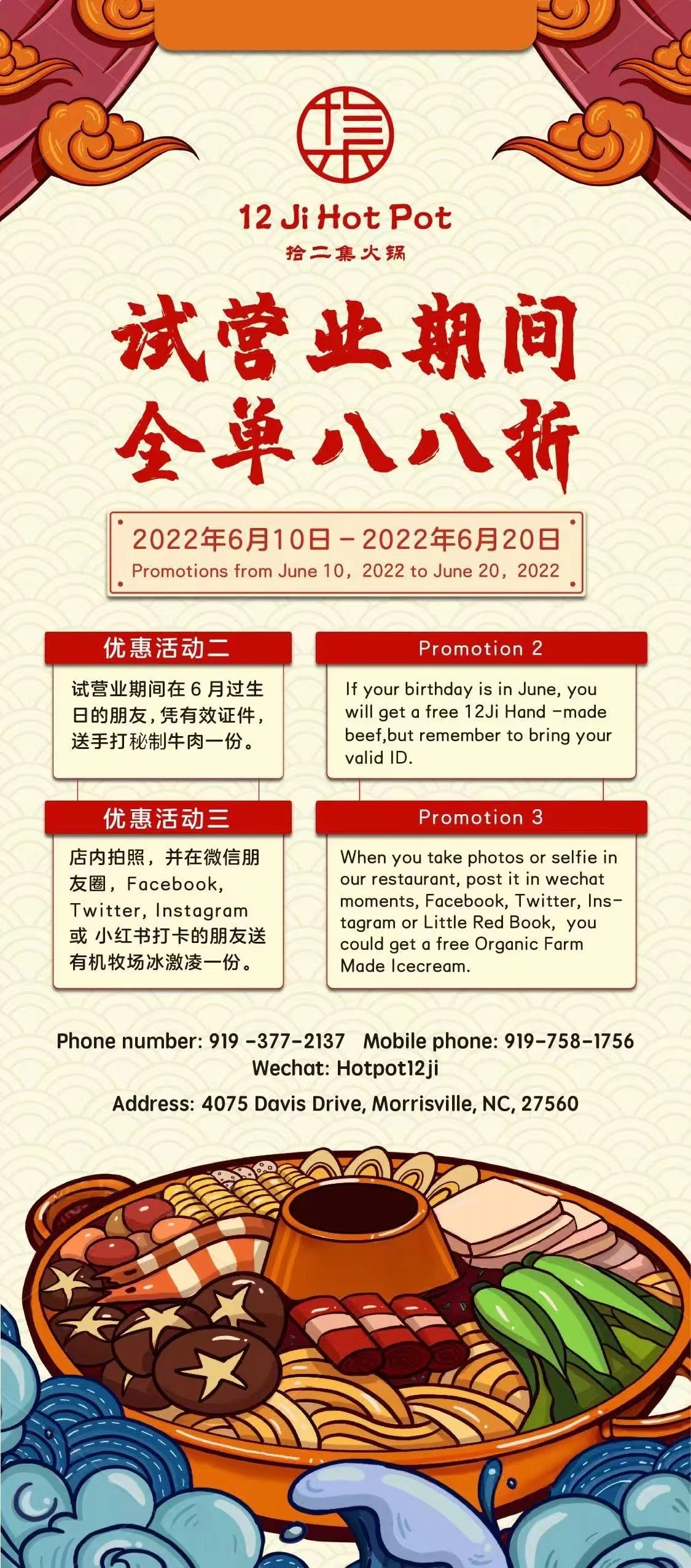 12 Ji Hot Pot is an authentic Chengdu style hotpot restaurant located in North Carolina’s Triangle area, bringing bold flavors and a traditional dining experience to the local community. I led part of the brand design and social media marketing, creating the logo, menu, promotional posters, coupons, and condiment labels. I also managed the restaurant’s online presence across Red Note, Facebook, and WeChat groups, crafting promotional content and updates to better support customer engagement.